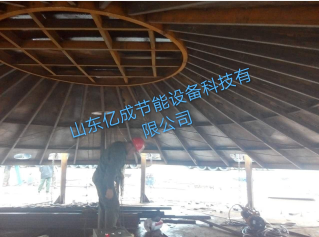 大型鋼板庫庫頂有三種基本結構形式,分別是型鋼骨架頂,桁架頂,網架頂三種結構形式,選型時主要是根據鋼板倉的跨度和庫頂的設備荷載來確定的,型鋼骨架頂 一般用于跨度不大于27米,庫頂設備荷載小于50KN的情況下,且不存在水平力;桁架頂一般用于跨度27-50米,庫頂設備荷載一般不大于200KN,不存在水平力的情況下使用;網架頂一般用于跨度30米以上,庫頂設備荷載大于200KN,存在水平力且受力情況復雜的情況下使用。根據不同的荷載工況,選擇合理的結構形式。