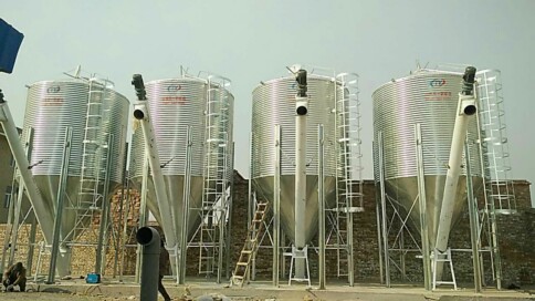 鋼板庫庫體焊接施工結束之后,按照圖紙將鋼板庫庫壁外圍管道的支架方位在鋼板庫庫壁上標示出來,用角鐵焊接支架,待支架焊接結束之后,開端從廊道門口處開端裝置管道,先圍底層DN100的焊管,將DN100的焊接端頭用卡子固定住,用倒鏈緊固曲折鋼管的另一端。